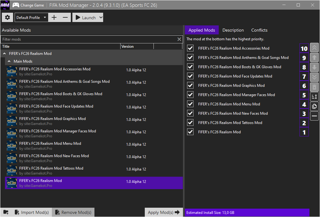 На данной странице вы можете приобрести товар FC 26 - Realism Mod by FIFER 1.0 Alpha 12 TU 1.4.3. Подробное описание, стоимость товара, а также отзывы на него вы можете прочитать выше. В нашем магазине, вы, как покупатель, сможете воспользоваться товаром FC 26 - Realism Mod by FIFER 1.0 Alpha 12 TU 1.4.3 сразу после оплаты. Вам не придётся ждать ни секунды! При оплате нет необходимости регистрироваться! Единственное, что от вас потребуется - выбрать наиболее удобный для вас способ оплаты и осуществить покупку. Все приобретенные вами товары хранятся в разделе «Мои покупки» и вы в любой момент сможете их забрать. В левой колонке сайта с помощью меню вы можете найти интересующий вас товар. Там же вы можете увидеть самые популярные категории товаров - это PIN-коды, Steam-ключи и другие дополнения к самым лучшим, топовым играм, таким как Counter Strike, Battlefield 4, Fifa, DIABLO 3, CALL OF DUTY 4 и многие другие.