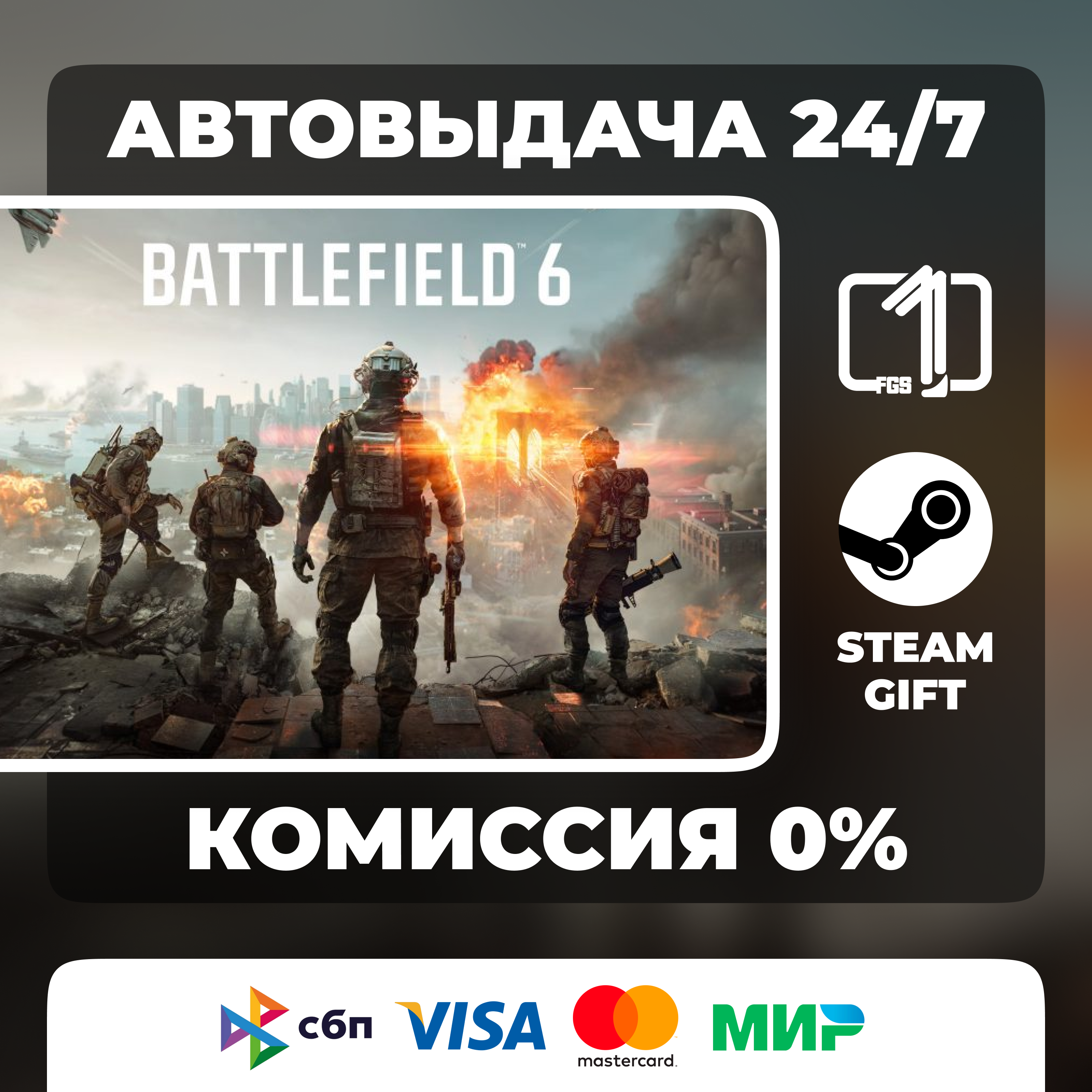 На данной странице вы можете приобрести товар Battlefield 6 STEAM GIFT АВТОВЫДАЧА РОССИЯ. Подробное описание, стоимость товара, а также отзывы на него вы можете прочитать выше. В нашем магазине, вы, как покупатель, сможете воспользоваться товаром Battlefield 6 STEAM GIFT АВТОВЫДАЧА РОССИЯ сразу после оплаты. Вам не придётся ждать ни секунды! При оплате нет необходимости регистрироваться! Единственное, что от вас потребуется - выбрать наиболее удобный для вас способ оплаты и осуществить покупку. Все приобретенные вами товары хранятся в разделе «Мои покупки» и вы в любой момент сможете их забрать. В левой колонке сайта с помощью меню вы можете найти интересующий вас товар. Там же вы можете увидеть самые популярные категории товаров - это PIN-коды, Steam-ключи и другие дополнения к самым лучшим, топовым играм, таким как Counter Strike, Battlefield 4, Fifa, DIABLO 3, CALL OF DUTY 4 и многие другие.