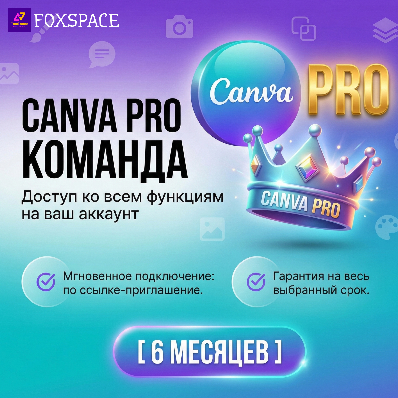На данной странице вы можете приобрести товар Canva Pro Мгновенная подписка 6 МЕСЯЦЕВ. Подробное описание, стоимость товара, а также отзывы на него вы можете прочитать выше. В нашем магазине, вы, как покупатель, сможете воспользоваться товаром Canva Pro Мгновенная подписка 6 МЕСЯЦЕВ сразу после оплаты. Вам не придётся ждать ни секунды! При оплате нет необходимости регистрироваться! Единственное, что от вас потребуется - выбрать наиболее удобный для вас способ оплаты и осуществить покупку. Все приобретенные вами товары хранятся в разделе «Мои покупки» и вы в любой момент сможете их забрать. В левой колонке сайта с помощью меню вы можете найти интересующий вас товар. Там же вы можете увидеть самые популярные категории товаров - это PIN-коды, Steam-ключи и другие дополнения к самым лучшим, топовым играм, таким как Counter Strike, Battlefield 4, Fifa, DIABLO 3, CALL OF DUTY 4 и многие другие.
