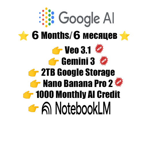 | Описание товара: | Откройте для себя самую мощную версию экосистемы ИИ от Google и мгновенно выведите свою продуктивность, креативность и рабочие процессы на новый уровень. Этот премиальный пакет предоставляет полный доступ к Gemini Pro, продвинутые AI-инструменты, кинематографическую генерацию видео и на 100% приватный аккаунт — исключительно ваш. Идеально подходит для креаторов, разработчиков, владельцев бизнеса, студентов, исследователей, маркетологов и всех, кто хочет элитную производительность ИИ без ограничений. 🎁 Что вы получаете: Лучший выбор для ежедневной продуктивности, контента и профессиональной работы Включает: Идеально для: Важно: аккаунт полностью принадлежит вам, с полной свободой изменения любых данных аккаунта. |